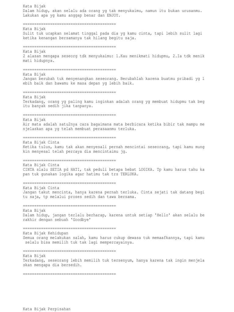 Kumpulan Kata Kata Mutiara Bijak Indah Tentang Cinta Dan Kehidupan