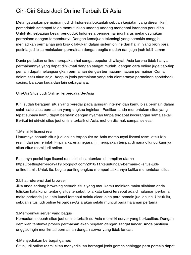 Ciri Ciri Situs Judi Online Terbaik Di Asia