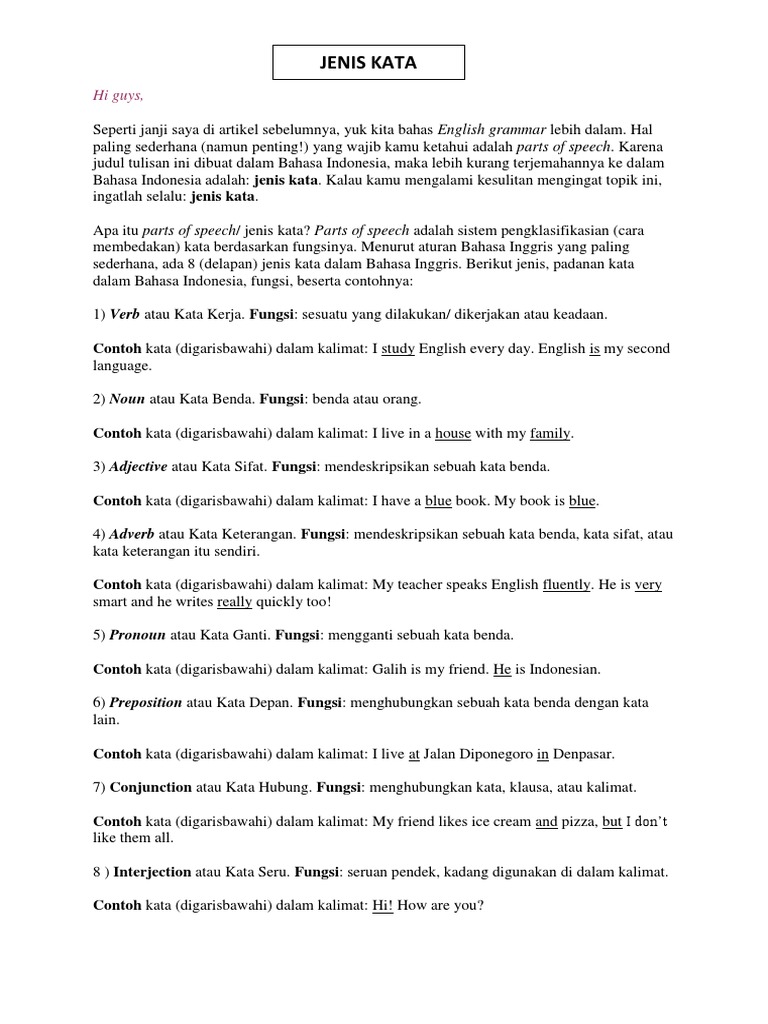 Bab 1 Jenis Jenis Kata Parts Of Speech 1 1 Presentasi