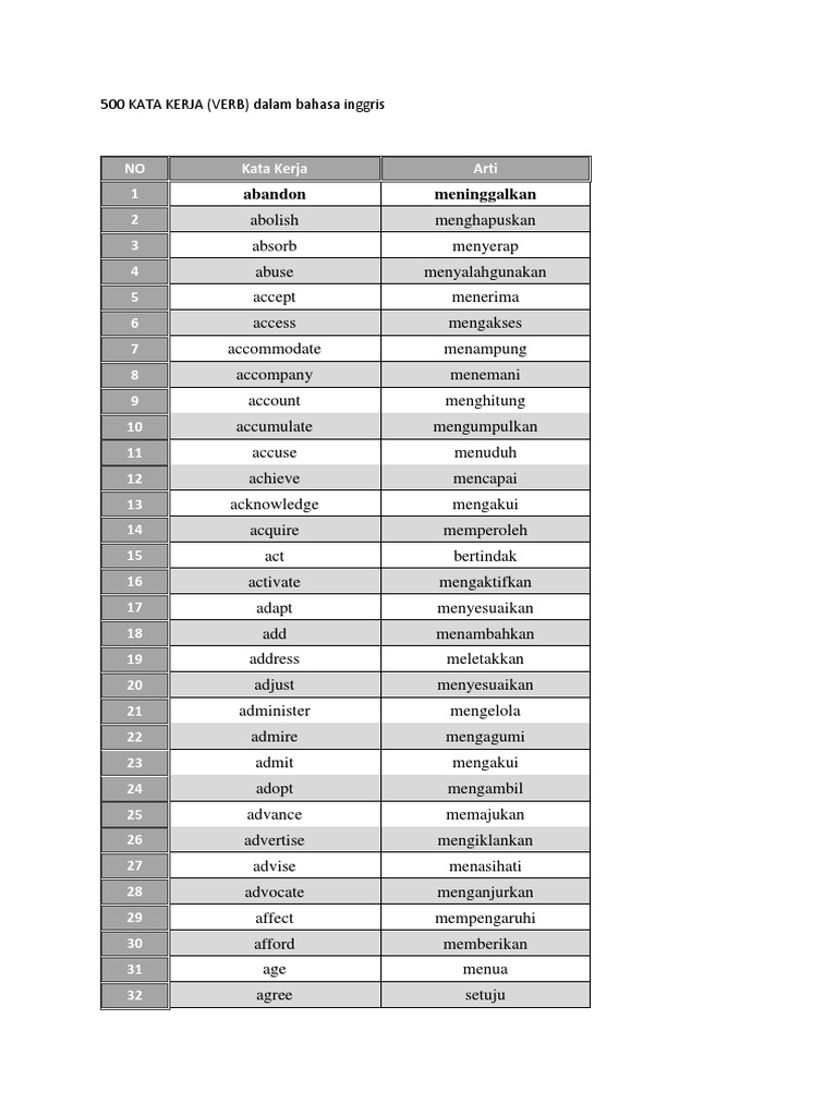 500 Kata Kerja Dan 500 Kosa Kata Bahasa Inggris Indonesia