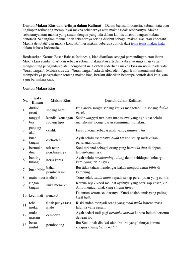 Adalah makna kata yang menunjukkan arti sebenarnyasesungguhnya dari suatu benda peristiwa objek dan lain sebagainya. Makna leksikal dibagi menjadi 2 yaitu makna kata langsung dan makna kata yang menunjukkan makna kiasan. Berisi kata peribahasa kiasan dalam bahasa indonesia.