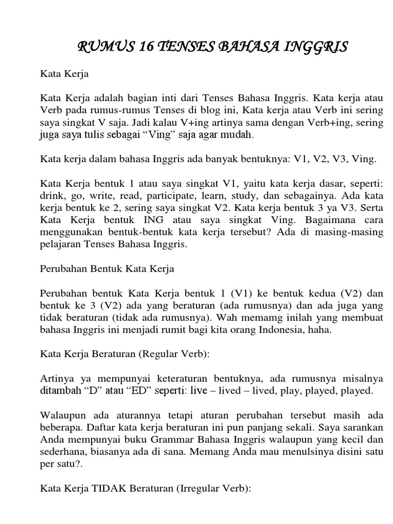 108614393 Rumus 16 Tenses Bahasa Docx